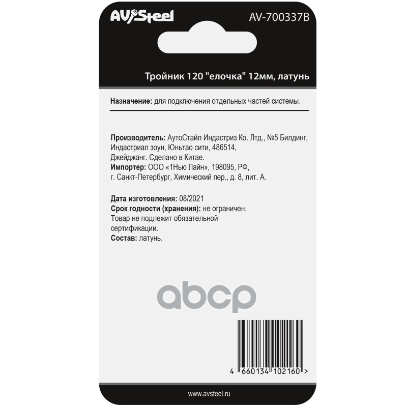 Купить запчасть AV700337BБЛИСТЕР Тройник Y-образный елочка 12мм, латунь, в блистере AV Steel с доставкой в Эль-Монте.