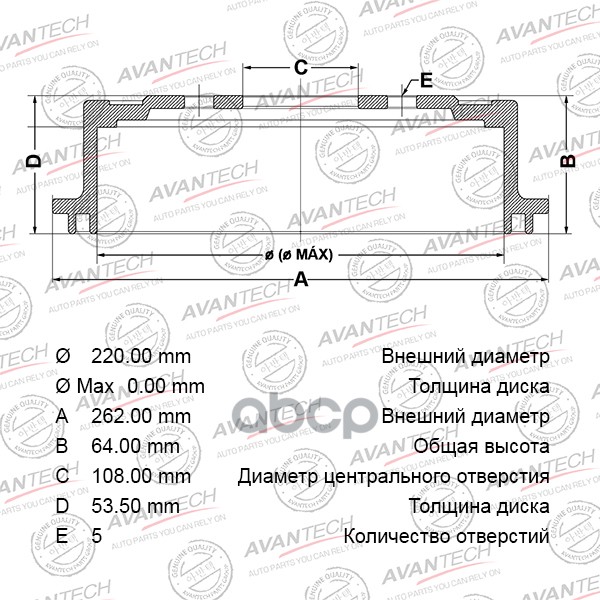 Диск тормозной задний AVANTECH 26700AE010 / 26700-AE062 / 26700-AE061 / 26700-AE060