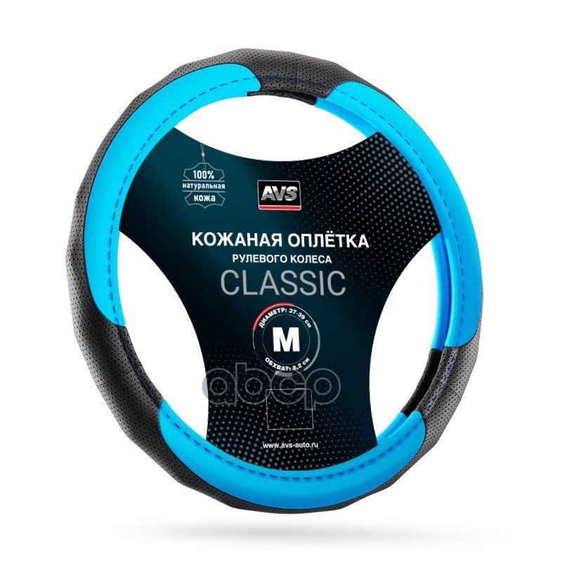 Наименование: Оплетка на руль (нат. кожа) AVS GL-910M-LBL (размер M, ярко голубой)