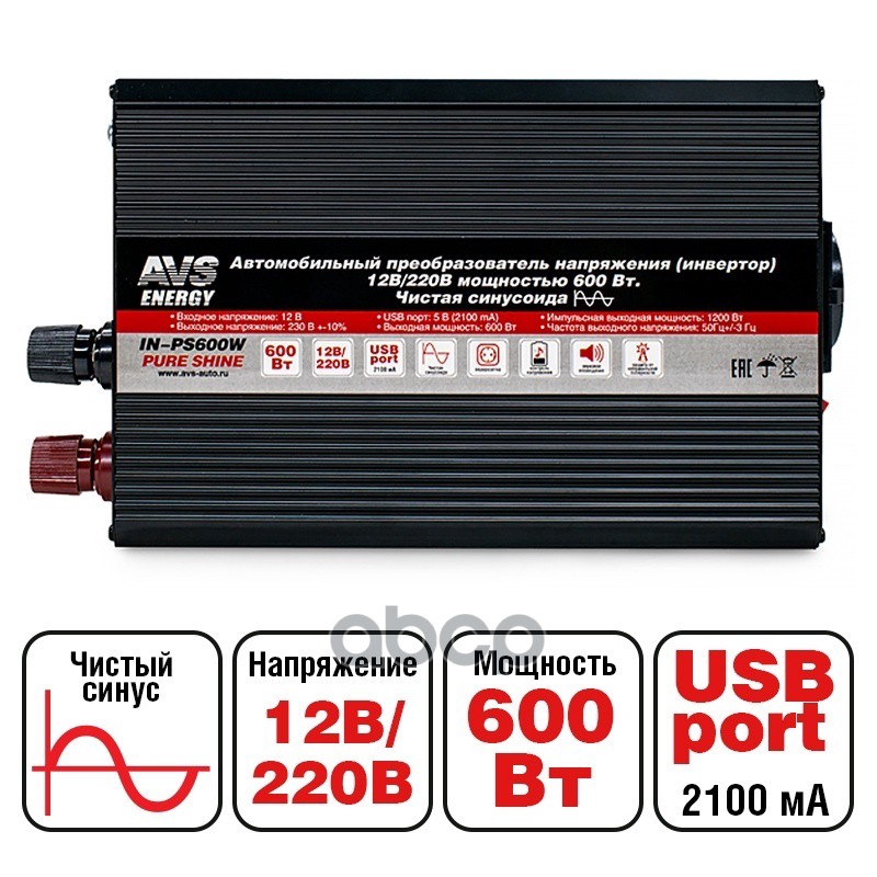 Наименование: ПРЕОБРАЗОВАТЕЛЬ НАПРЯЖЕНИЯ (ИНВЕРТОР) 12-220V 600ВТ ЧИСТАЯ СИНУСОИДА A