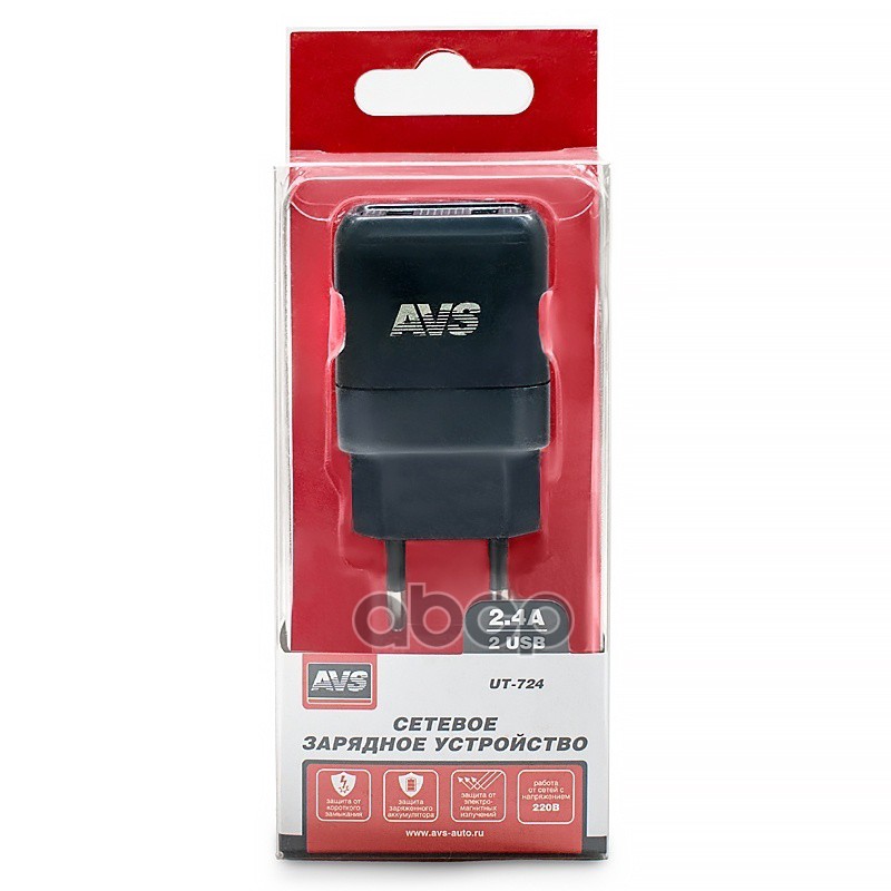 Наименование: USB СЕТЕВОЕ ЗАРЯДНОЕ УСТРОЙСТВО AVS 2 ПОРТА UT-724 (2,4А)