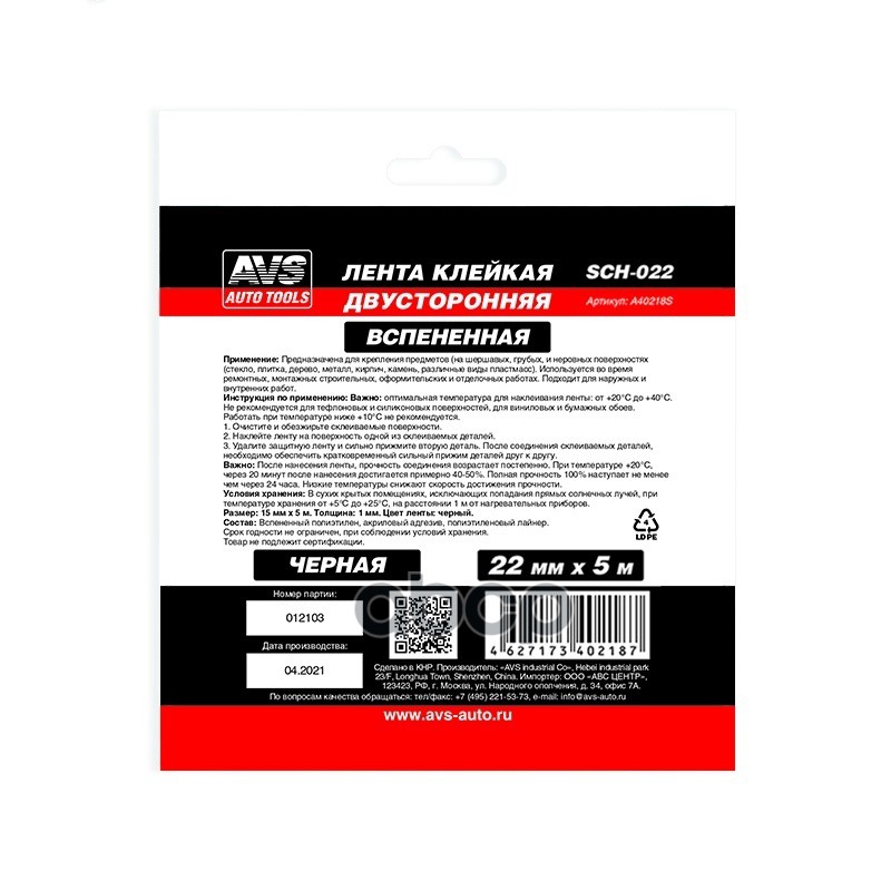 Купить запчасть A40218S Скотч двухсторонний AVS 22 мм х 5 м черный A40218S с доставкой в Эль-Монте.