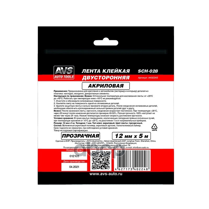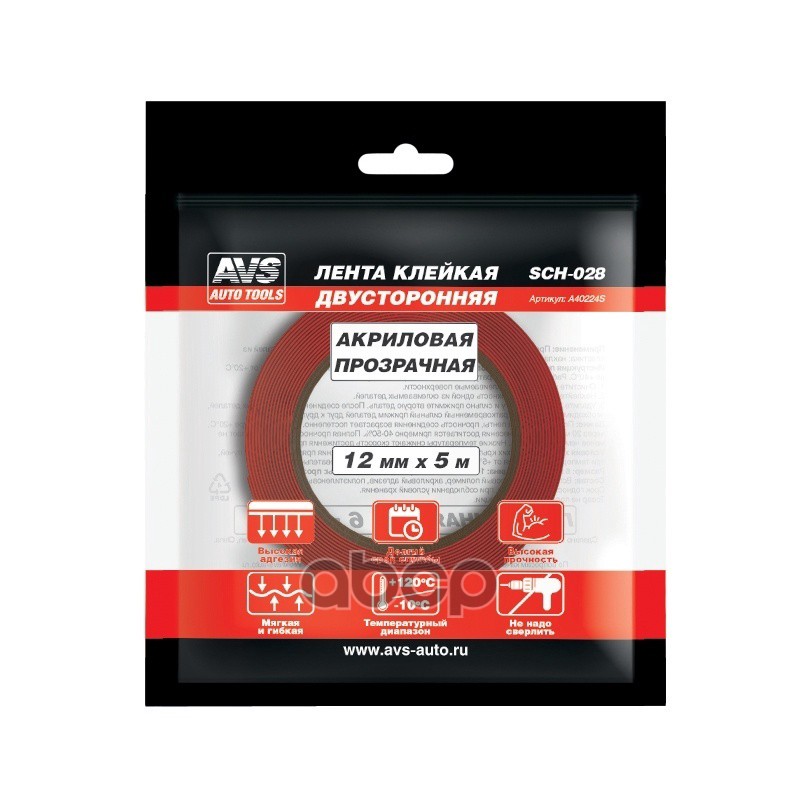Купить запчасть A40224S Скотч двухсторонний AVS 12 мм x 5 м прозрачный с доставкой в Эль-Монте.
