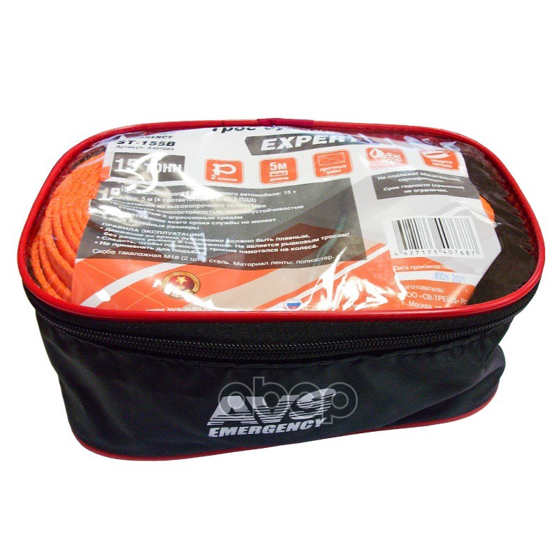 Трос буксировочный (усиленный,цвет-оранжевый) AVS EXPERT ST-155B 15т 5м.шаклы, шт