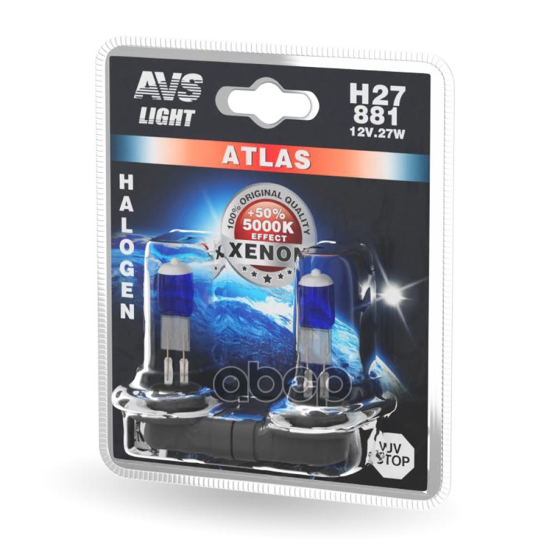 Лампа 12 В H3 55 Вт 5000К на п/туманные фары галогенная 2 шт. блистер Atlas AVS *Сс A78568S