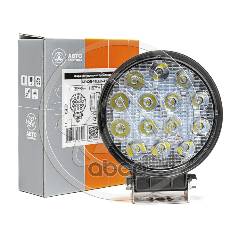 Фара светодиодная Avtoelectrica круглая 14 LED рассеянный свет 42W, (115 х 55 х 142) 12/24V AE42R-14LED-55PC 09.1888