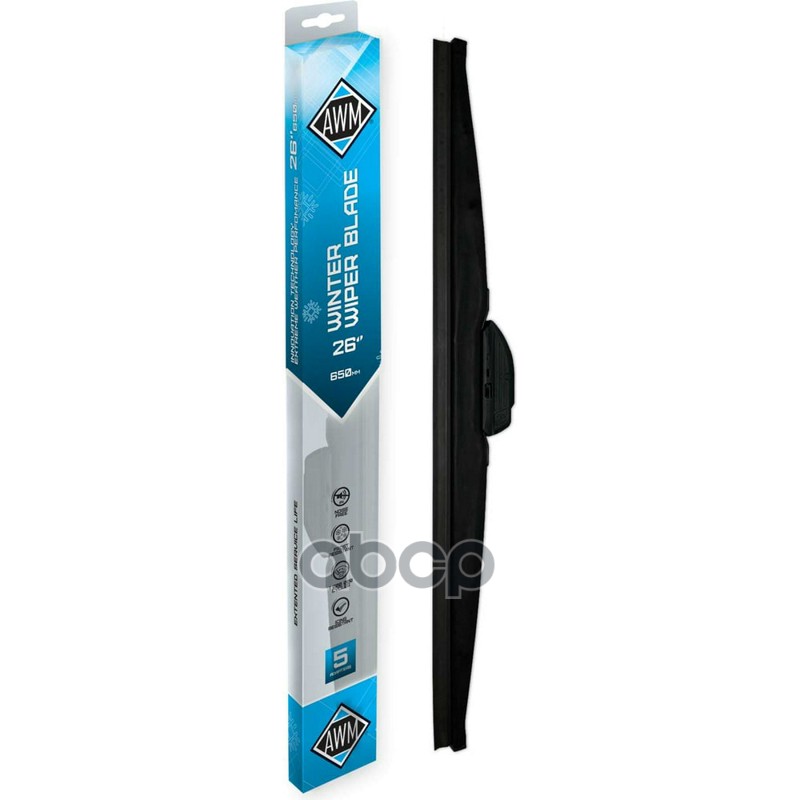 Щетка стеклоочистителя ЗИМНЯЯ AWM W 26 R, 650 мм универсальная, крепление Bayonet arm/ штырь, Hook/крючок