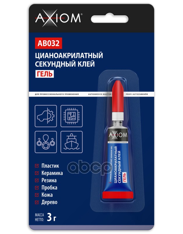 Автохимия и автокосметика AXIOM® — это специальная линейка продукции для профессиональных автосервисов. Ассортимент AXIOM® включает в себя очистители, универсальные и специальные смазки, герметики, клеи, антикоррозионные материалы, средства по уходу за кузовом и салоном, материалы для шиномонтажа и сопутствующие товары.