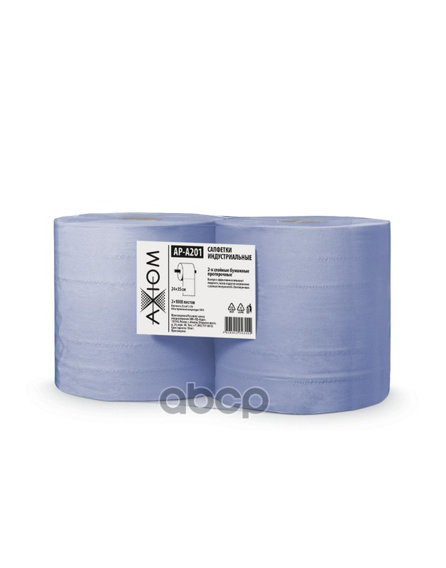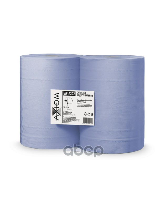 Салфетки индустриальные 2-х слойные бумажные протирочные (2 рулона по 1000 листов 24х35 см)
