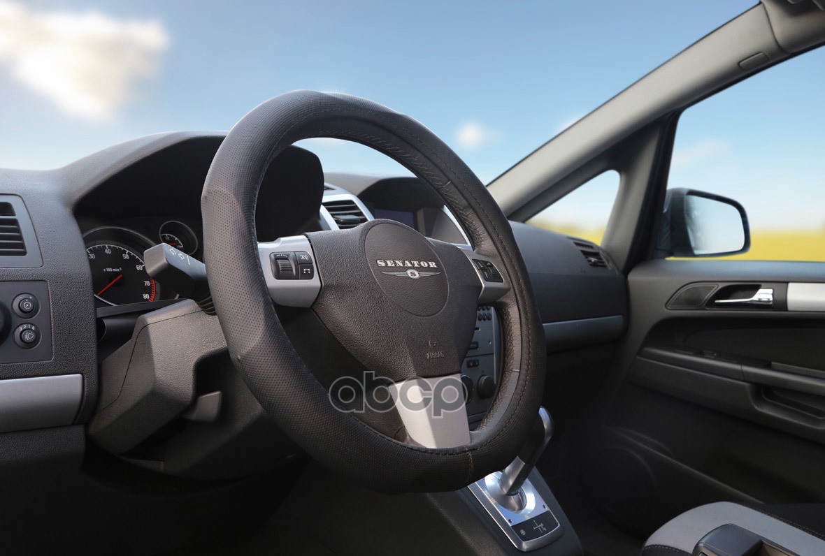 Оплетка руля M Azard Senator Omaha гладкая экокожа с вставками из перфорированной экокожи черная OPLS4501