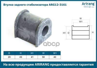 Наименование: Втулка стабилизатора SsangYong Actyon 06-, Kyron 05-, Korando 96-, Rexton 02- заднего (D20mm) ARIRANG ARG123161