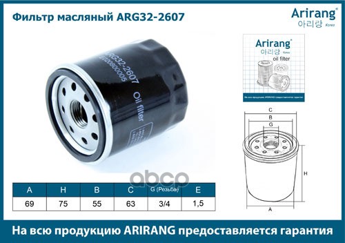 Фильтр масляный Geely MK 1.5 08- ARIRANG W681 ; W683 ; ARG322243 ; ARG322403 ; ARG322608 ; ARG322606 ; E020800005