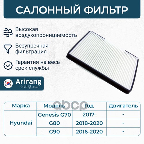 Фильтр салона Hyundai (Creta 16-, Solaris 17-, Tucson 15-, 18-)), Kia (Rio 17-/Rio IV X-Line 17-/Seltos 19-, Soul 18- )