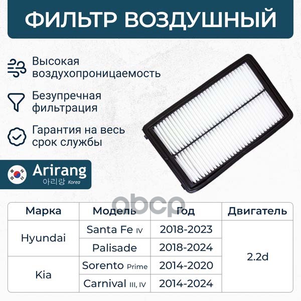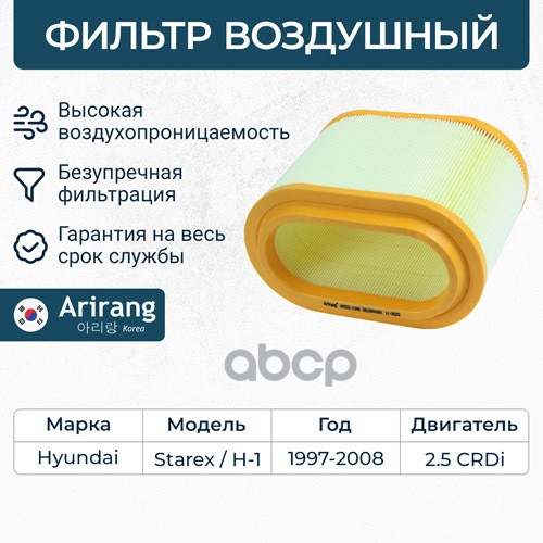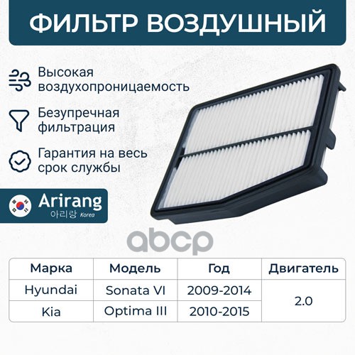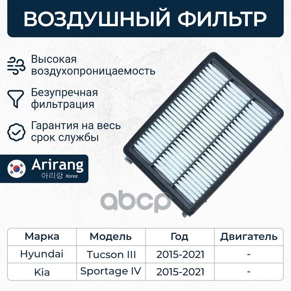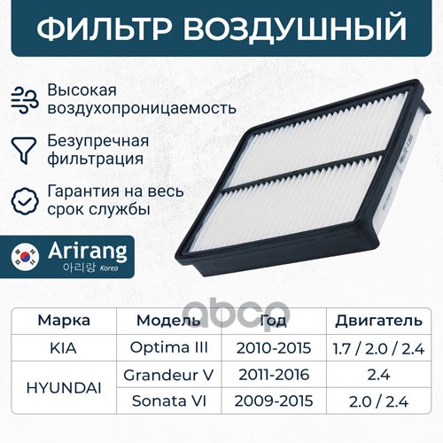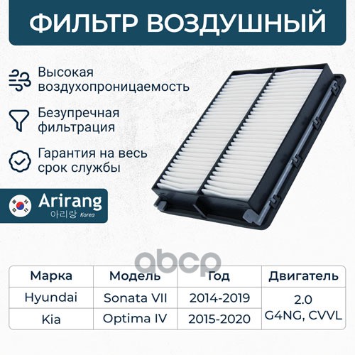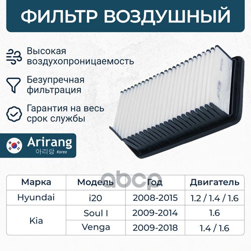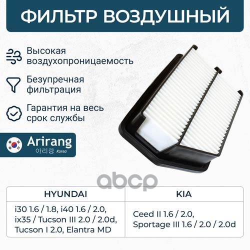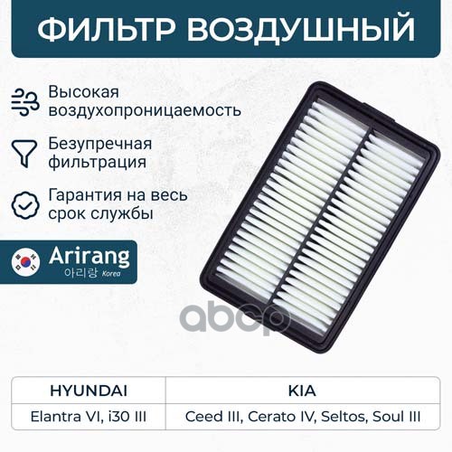 Фильтр воздушный Hyundai i30 16-; Kia Ceed 18-, Cerato 18-, Soul 19- 1.0-1.6 MPi, CRDi ARIRANG ARG321336 28113F2000 ; C24054