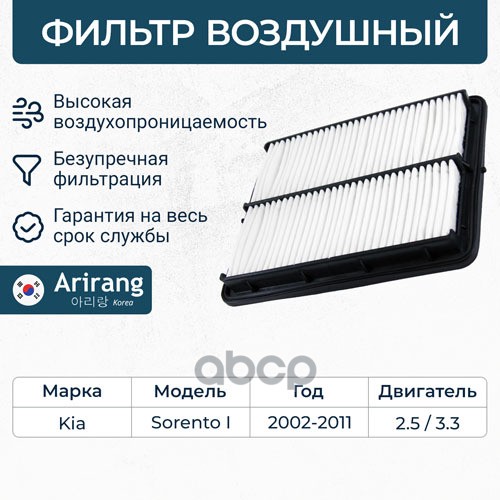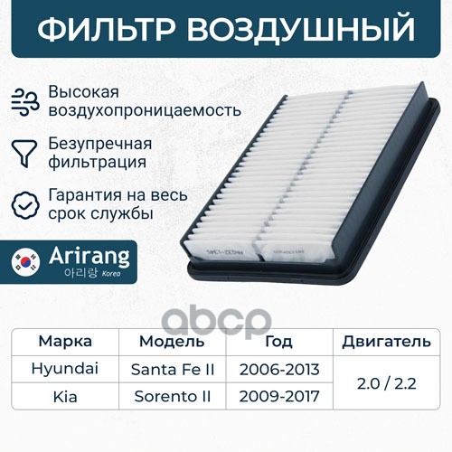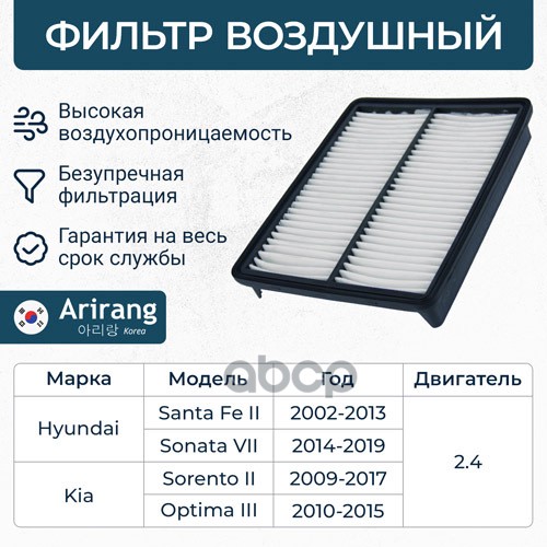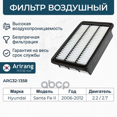 Фильтр воздушный Hyundai Santa Fe (CM) 06-12; Kia Sorento (XM) 09-15 2.4 (G4KE, G4KJ) ARIRANG ARG321359 281132P100 ; C28010
