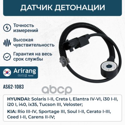 Датчик положения коленвала Hyundai (Creta 16-21/Elantra 06-/i30 12-/i40 11-18/ix35 11-15/Solaris 10-14/Sonata 10-/Tucson 14-), Kia (Carens 06-/Ceed 06-/Cerato 06-/K5 20-/Rio 11-17/Optima 10-/Seltos 19-/Soul 08-/Sportage 10-)