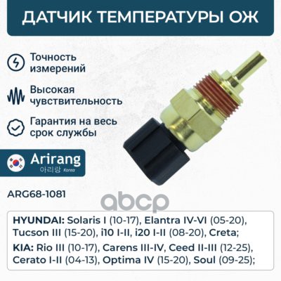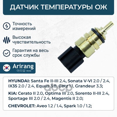 Датчик температуры Hyundai Accent (Тагаз) 00-, Solaris 10-; Kia Ceed 07-, Rio 05- ARIRANG 6378018 ; 640HH00 ; 3922038020 ; 3922025500 ; 3922038010 ; 3922038030 ; 3923026700 ; 3920042030 ; 330632 ; 604051 ; J5620300 ; PE13006 ; ADG07261 ; AMDSEN86 ; SHE42