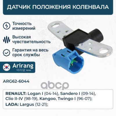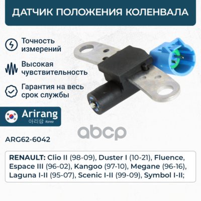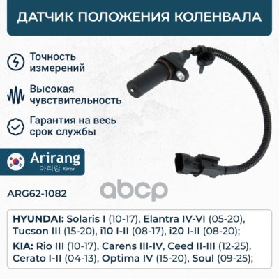 Датчик положения коленвала Hyundai (Creta 16-21/Elantra 06-/i30 12-/i40 11-18/ix35 11-15/Solaris 10-14/Sonata 10-/Tucson 14-), Kia (Carens 06-/Ceed 06-/Cerato 06-/K5 20-/Rio 11-17/Optima 10-/Seltos 19-/Soul 08-/Sportage 10-)