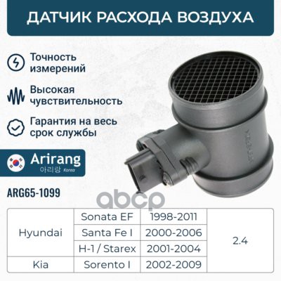 Датчик массового расхода воздуха Hyundai (Creta/Elantra/G80/G90/Santa Fe 12-19/H-1 07-21/I30 12-/i40 11-15/ix20/Palisade/Veloster/Solaris 11-17/Sonata), Kia (Carens/Ceed/Cerato/Optima/Sorento/Soul/Rio/Sportage)