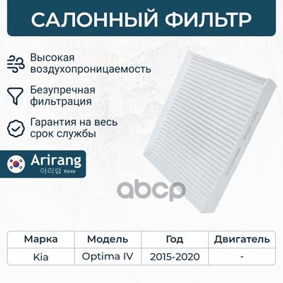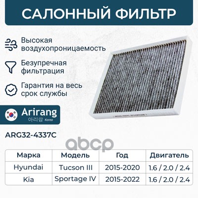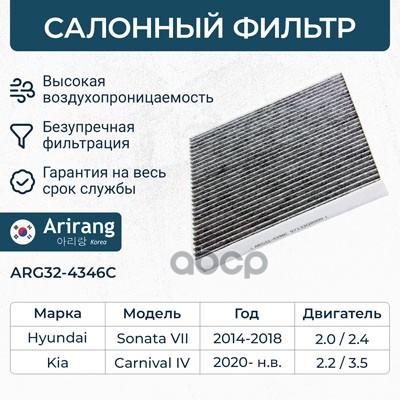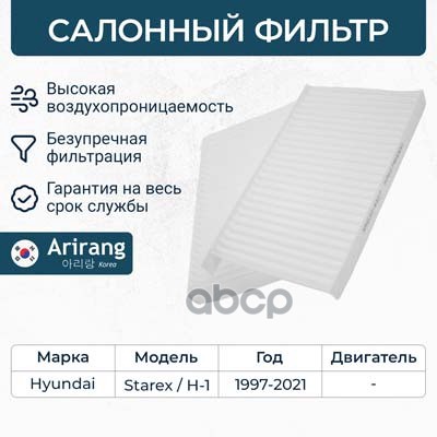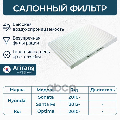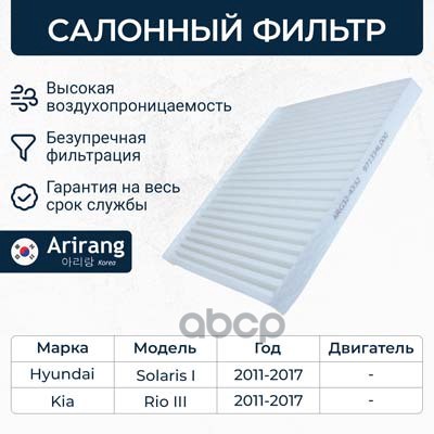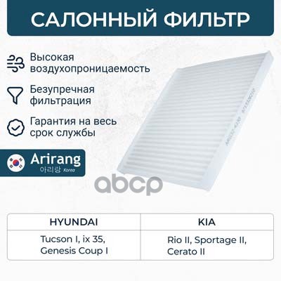 Фильтр салона Hyundai i10 I, II 08-; Kia Picanto I, II 04- ARIRANG ARG324361 CU1910 ; 971330X900 ; 9713307000 ; 9713307010 ; 9713307010AT ; S9713307010AT