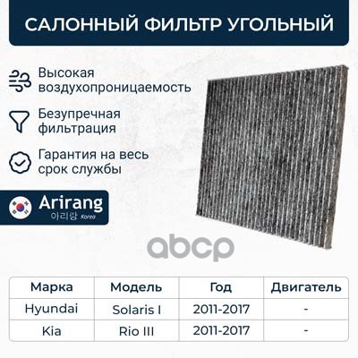 Фильтр салона угольный Hyundai (Creta 16-, Solaris 17-, Tucson 15-, 18-)), Kia (Rio 17-/Rio IV X-Line 17-/Seltos 19-, Soul 18- )