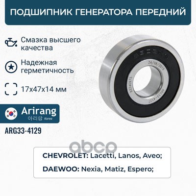 Подшипник генератора передний17x47x14mm (6303) Daewoo (Nexia Espero Matiz) Chevrolet (Lanos Lacetti Aveo) 17x40x12mm