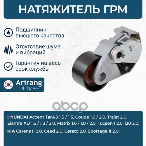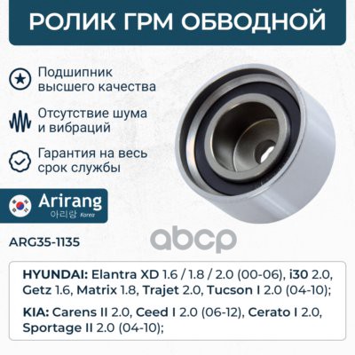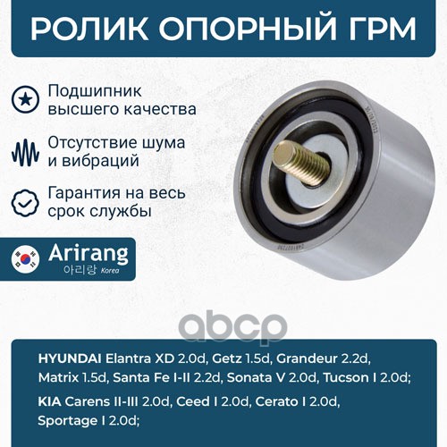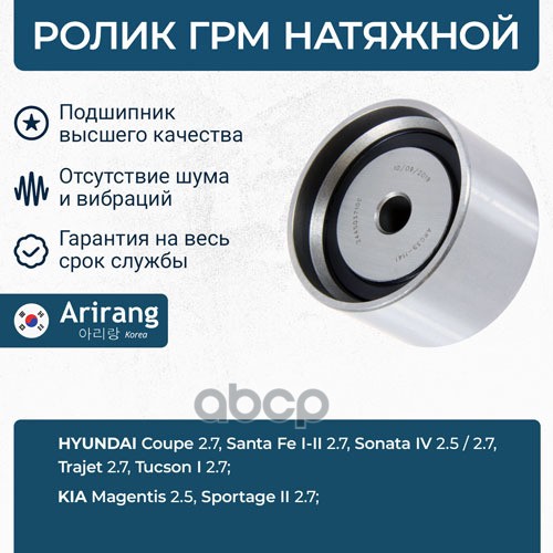 Ролик натяжителя ГРМ Hyundai (Accent 02-05, Elantra 01-06, Getz 03-05, SantaFe 01-06, 06-, Sonata 06-09, Tucson 04-10), Kia (Sportage 04-10, 10- ,Carens 02-06, Ceed 07-12, Cerato 04-10, )
