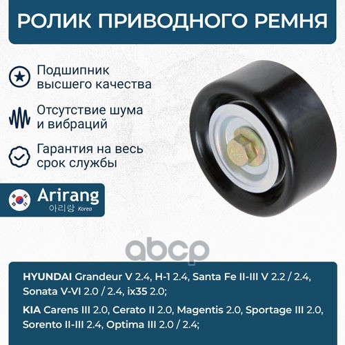 Ролик приводного ремня Hyundai (IX35 09-,13-, Santa Fe 10-, 12-, Sonata 05-, 10-,14-, Tucson 09-,13-), Kia (Carens 06-, Cerato 08-, Sorento 09-, Sportage 10-)