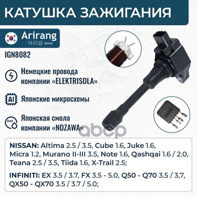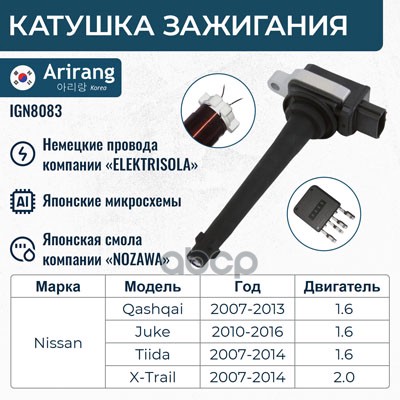 Катушка зажигания Nissan (Qashqai 06-13, Versa 06-13, Note 05-12, X-Trail 07-13), Infiniti (FX 08-, 13-)