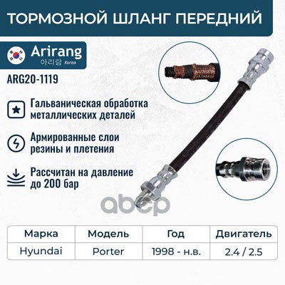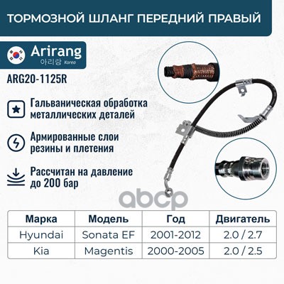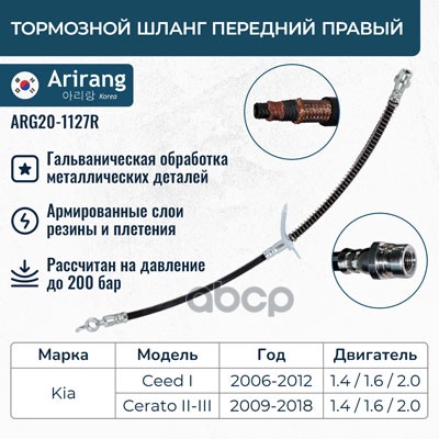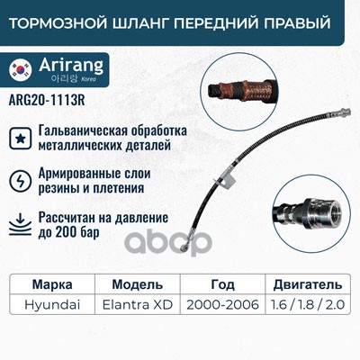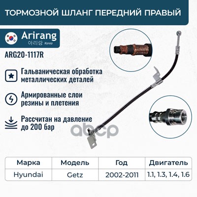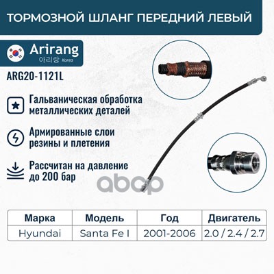 Шланг тормозной Hyundai Getz 02- передний ARIRANG левый 587311C000 ; 37145250005 ; 1987481169 ; KM8107621 ; PHD616 ; PH210137 ; PBH0129 ; BF0889 ; SL5736 ; ST587311C000