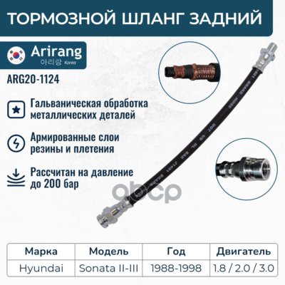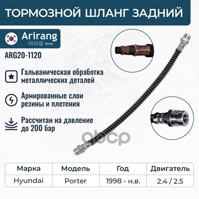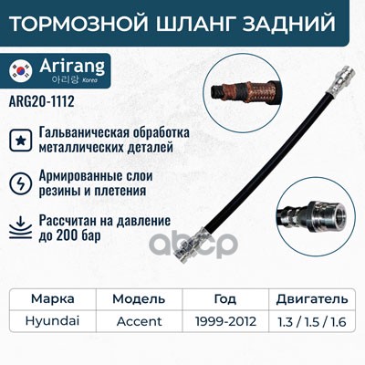 Шланг тормозной Hyundai Accent (ТагАЗ) 99-; Mitsubishi Lancer (CS) 03-09 задний ARIRANG ARG20-1112 587371A000 ; 5873725000