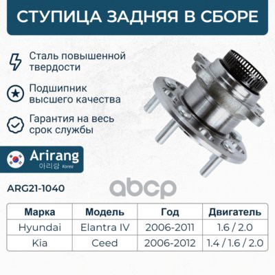Ступица задняя в сборе с подшипником (+ABS) Hyundai (Elantra 00-), Kia (Cerato I 04-09)