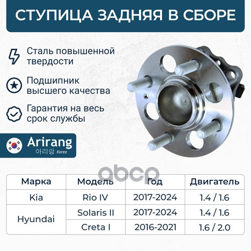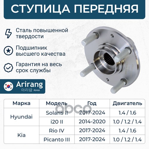 Ступица передняя Hyundai (Solaris 17-, I10 13-17,17-, I20 14-, 18-), Kia (Rio 17-, Picanto 17-/Rio IV X-Line 17-)