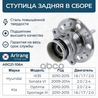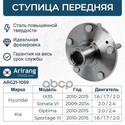 Ступица передняя Hyundai (IX35 09-, 13-, Sonata 04-, 07-), Kia (Sportage 10-13, Optima 13-15, Cadenza 10-16, 13-15)