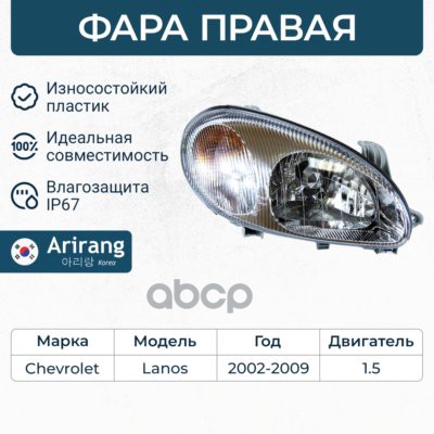 LACETTI SEDAN 03- Фара лев не под корректор(Китай)