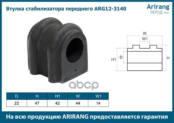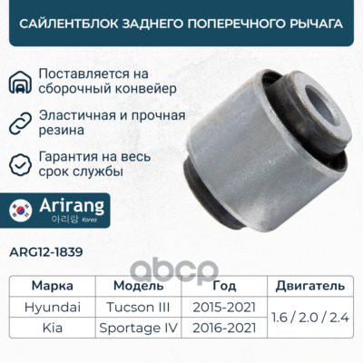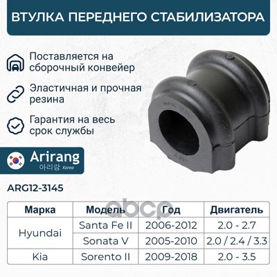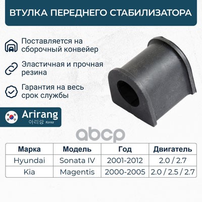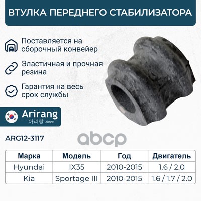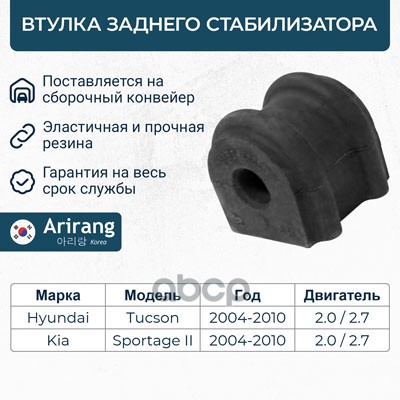 Втулка стабилизатора Hyundai Tucson 04-, Kia Sportage II 04- заднего ARIRANG 555132E000 ; 555132E100 ; 555131F000