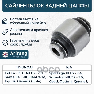 Сайленблок задней цапфы задний Kia (Ceed, Sportage 10-, Sorento 12-, Optima 06-), Hyundai (Santa Fe 06-, Elantra 06-, Sonata 09-)