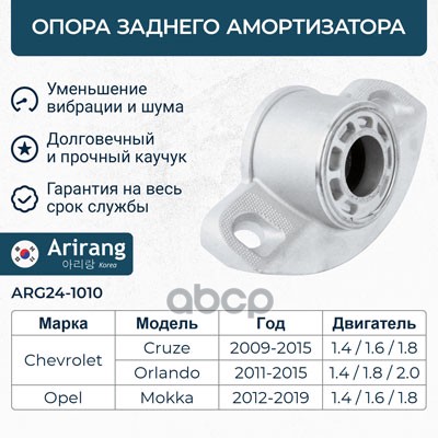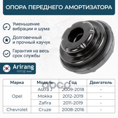 Опора амортизатора Chevrolet Cruze 09-, Opel Astra J 09- переднего ARIRANG (с подшипником) 13505131 ; 13505854 ; 13501413 ; 344573 ; 22809842 ; 344497