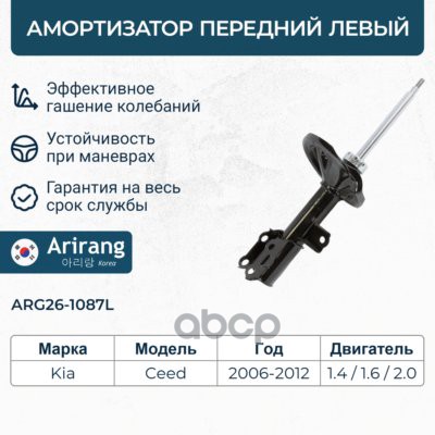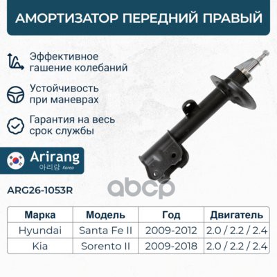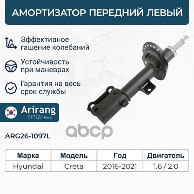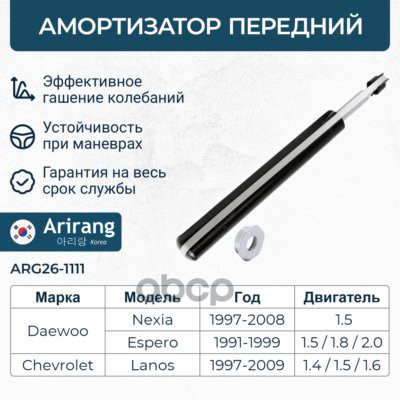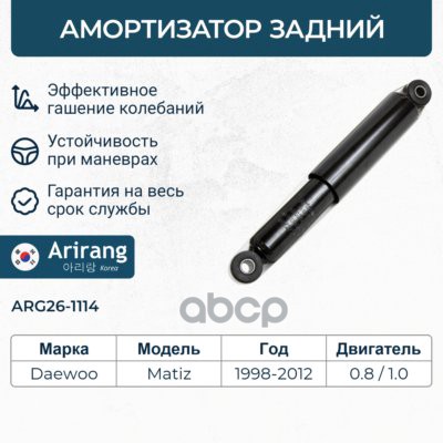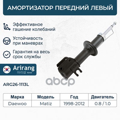 Амортизатор Daewoo Matiz 98-05; Chevrolet Spark -05 передний ARIRANG газовый правый ARG26-1113R 20040105 ; 20040104 ; 20030082 ; 20544 ; 22050137 ; 22050120 ; 20632201 ; 21845012 ; 218502 ; 060775HRB ; 060775HRB ; 061412GRB ; 061412GRB ; 110031 ; 129720 ;