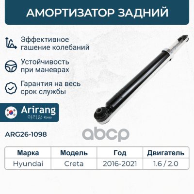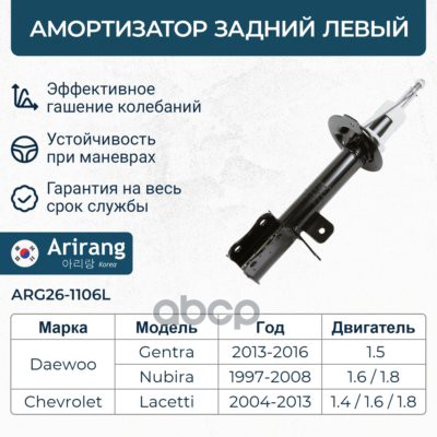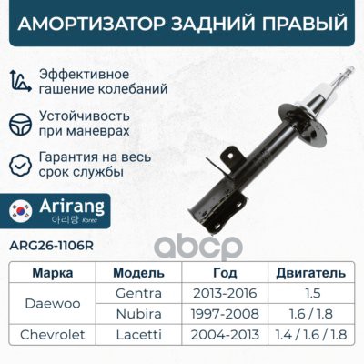 Амортизатор Chevrolet Lacetti 04-; Daewoo Gentra 13- задний ARIRANG газовый правый ARG26-1106R 8731305 ; 878045 ; 842480 ; 655033512 ; 96407822 ; 96407822 ; 96407822 ; 42130236 ; 42039085 ; 383532 ; 313469 ; 313469PCSMS ; 333419 ; 333419 ; 3351DG ; 292672