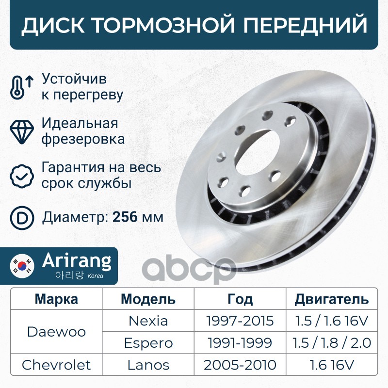 Диск переднего тормоза D255mm Daewoo (Nexia, DOHC) Chevrolet (Lanos T100 97-02 R14)