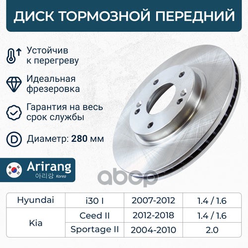 Диск переднего тормоза D280mm Kia (Cee'd 07-12 Sportage II 04-10) Hyundai (i30 I 07-09/09-12)