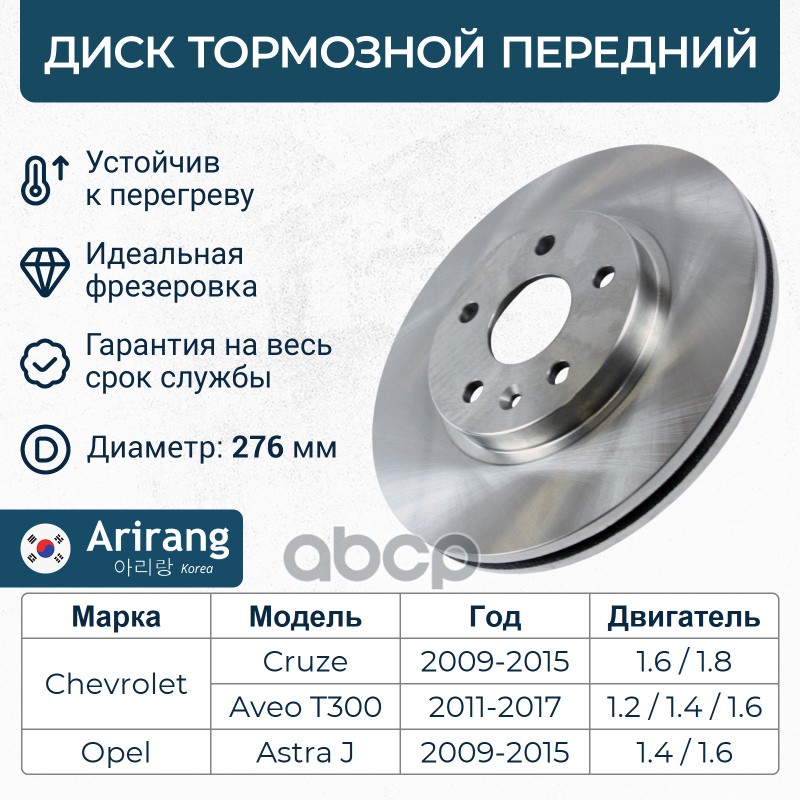 Диск переднего тормоза D276mm Chevrolet (Cruze 09-16, Aveo T300), Opel (Astra 09-15)