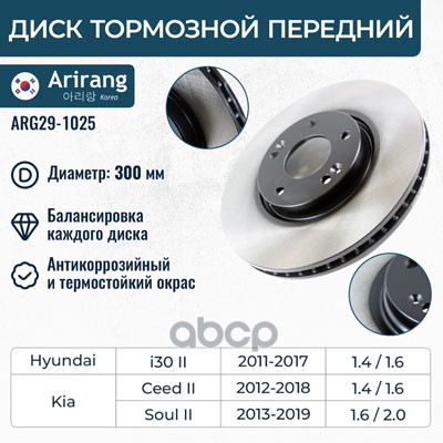 Диск переднего тормоза D300mm Kia (Cee'd 12, Soul 13-/K3 12-18), Hyundai (I30 12-)