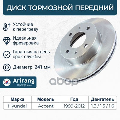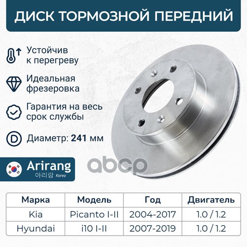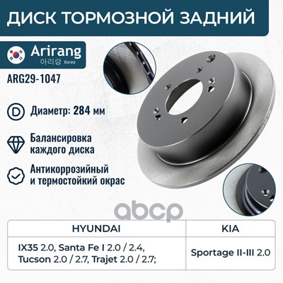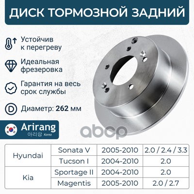 Диск заднего тормоза D262mm Hyundai (Getz 02-05/Getz II 05-11), Kia (Rio II 05-11)