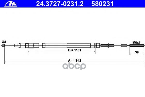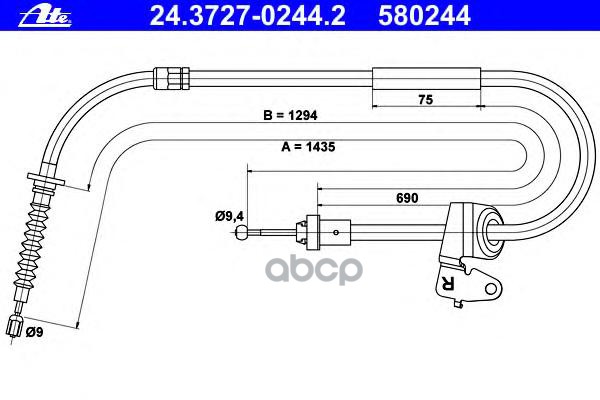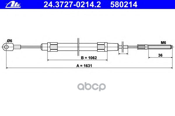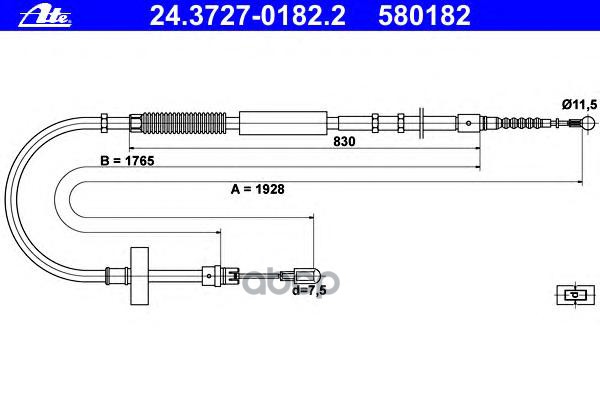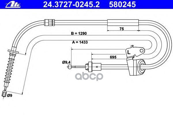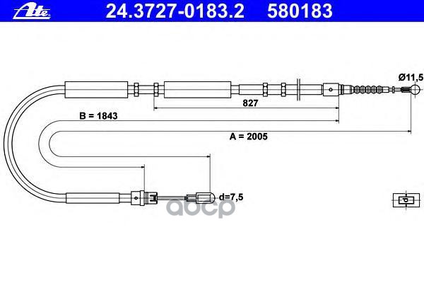 Трос ручного тормоза [барабан] L/R SKODA Fabia I/II, VW Polo/Fox, SEAT Cordoba/Ibiza III