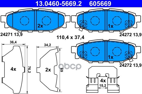 Колодки торм.зад. SUBARU BRZ 12->/Forester 08->/Impreza 01->/Legacy IV/V 03->/Outback 08->/XV 12->
