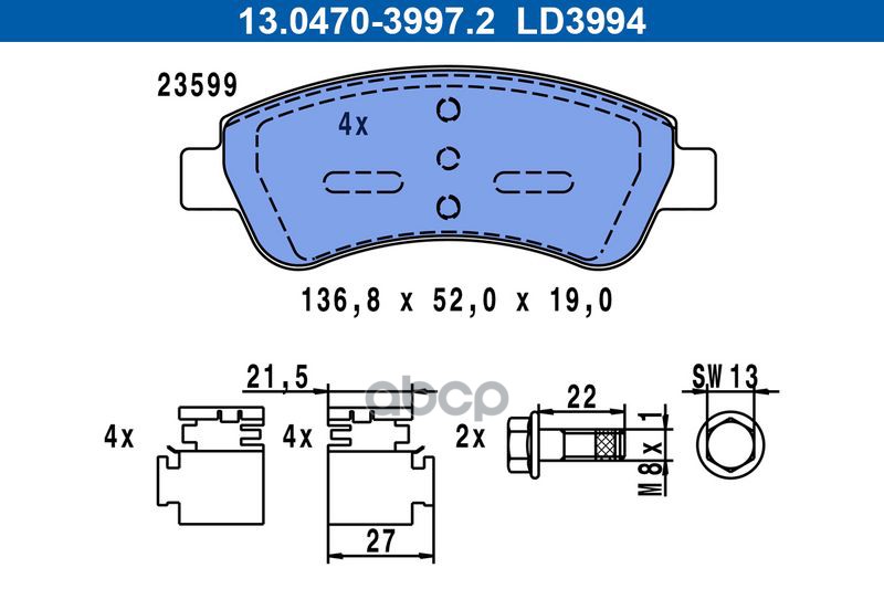 Колодки торм.зад. CERAMIC AUDI A1 10->/A3 03-13, SEAT Altea/XL 04->/Leon 05->, SKODA Octavia 04-13/SuperB 08->/Yeti 09->, VW Beetle 11->/Caddy III 04->/Eos 06->/Golf VI 08->/Jetta IV 10->/Scirocco 08->/Touran 03->