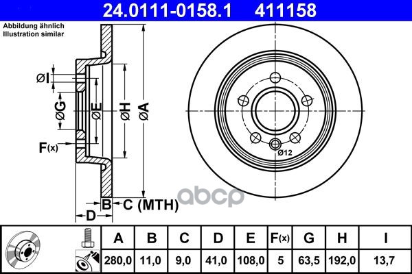 Торм.диск зад.[265x11] 5 отв. FORD C-max 1.6/1.8 02/07->/Focus c-max 1.6/1.8 10/03-03/07/Focus II 1.4-2.0/TDCI 11/04->