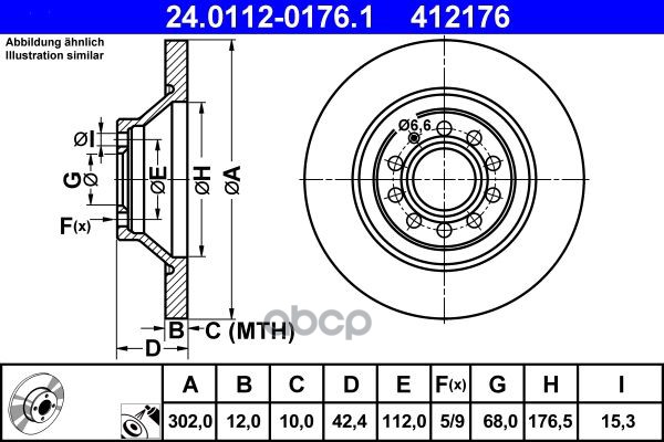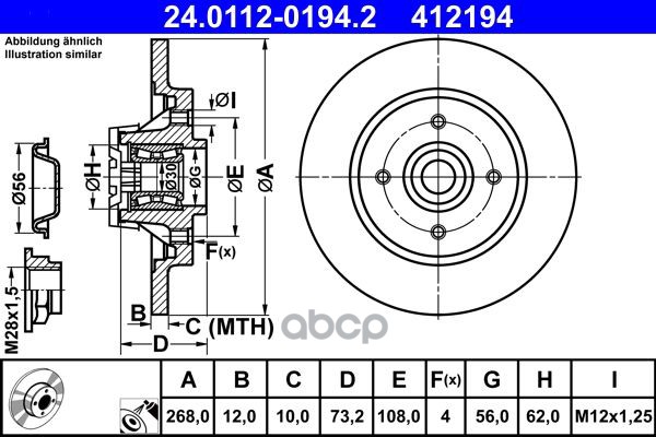 Диск торм. зад.[268x12] 5 отв. CHEVROLET Cruze 1,6-2,0 CDI 09->, OPEL Astra J 1,3-2,0/T/CDTI/ecoFLEX 09->/Mokka 12->